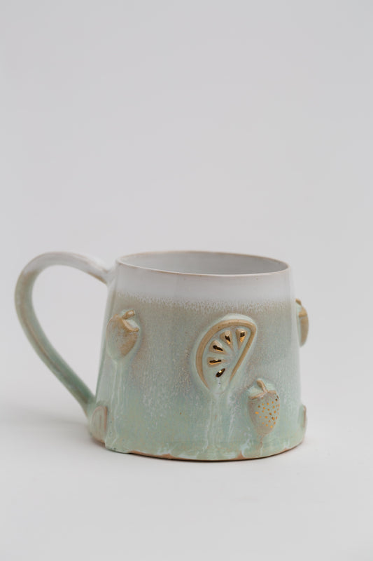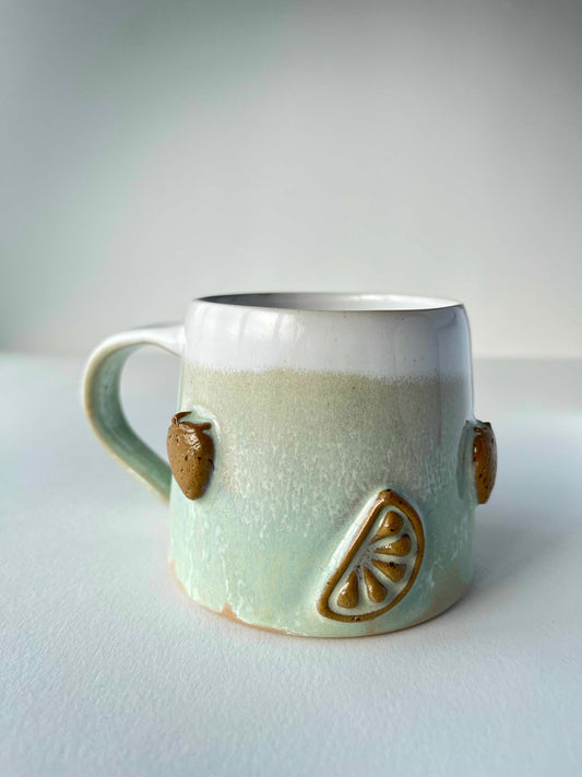 Tasse in Mintgrün weiß - Motiv "Früchte"