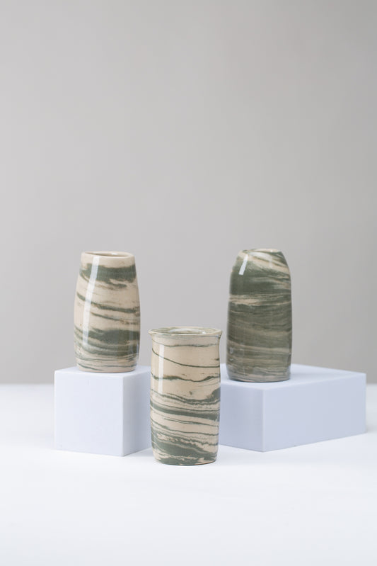 "Marble" Mini Tischvasen 3er Set - grün marmoriert