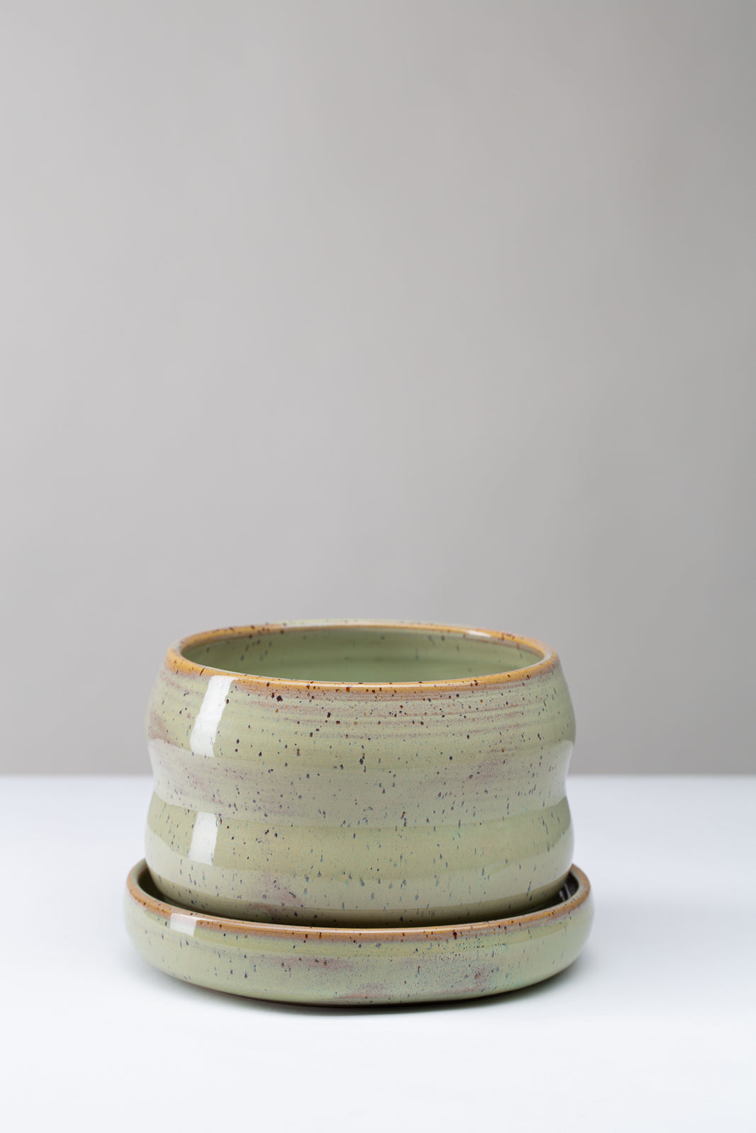 Dieses handgefertigte Blumentopf-Set ist perfekt für kleine Pflanzen oder deine Küchenkräuter. Der sanfte, grünliche Farbton mit dezenter Sprenkel-Optik und die weiche, organische Form machen das Set zu einem echten Hingucker. Der Topf verfügt über ein Abfließloch zur Vermeidung von Staunässe. Mit passender Untersetzer-Schale für optimalen Schutz. Ein Must-Have für alle, die Wert auf stilvolles Design und hochwertige Handwerkskunst legen.