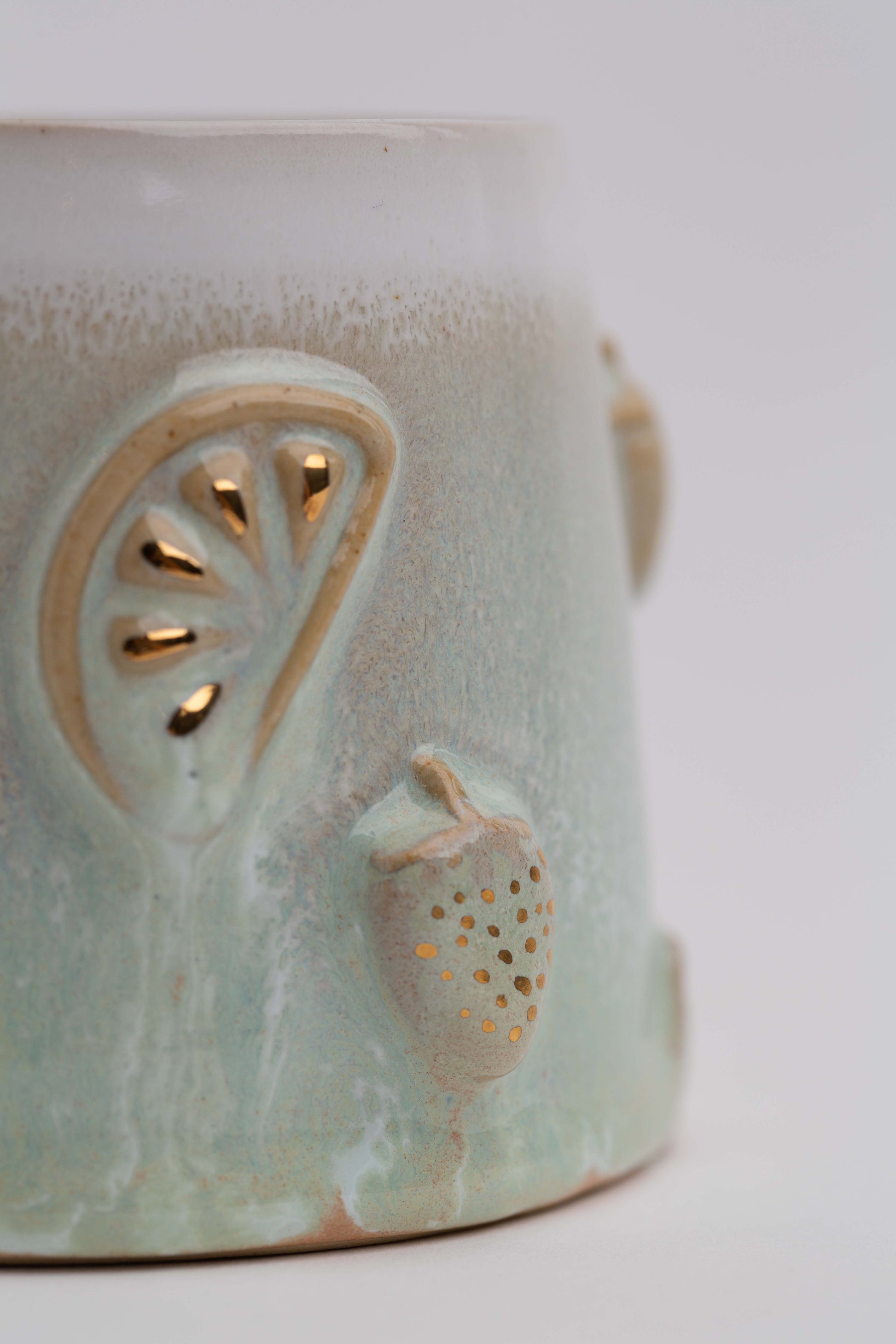 Goldige Stimmung in einer Tasse! 3D Früchtchen mit einem Akzenten aus Gold machen diese Tasse zu deinem Unikat zu Hause!